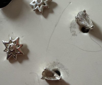 The stone fell out of one taking it to do the packaging and the hoops are impossible to close