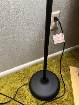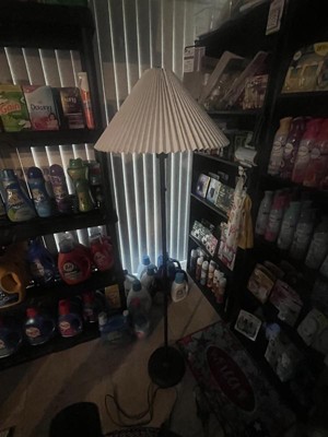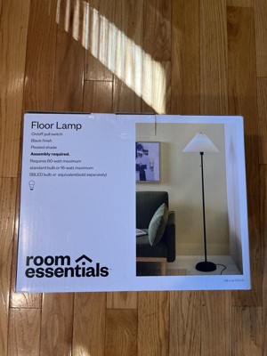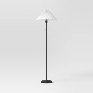 Create a cozy atmosphere in any corner of your home with this Stick Floor Lamp from Room Essentials™. This stick lamp has a sleek metal body with a pedestal base in a black finish and a white pleated cone-shaped shade for modern style and a soft glow. The floor lamp also sports a pull chain for easy on/off, while the five-foot cord allows for versatile placement in any room.