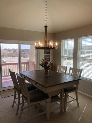 Love this chandelier. It's just what was needed in my dining room. The two colors combo brings the room together so well.