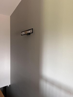 Love this sconce! It's a little narrower than I expected but still looks great in our stairwell. I wanted it mounted vertically however my fiancé installed it horizontally and I liked it better. I think it lights the entire stairwell better. I wish the glass wasn't ribbed though. I think it would give off better even lighting of it were smooth. It replaced an already exciting fixture and only took about 30 minutes to install. Mostly because it was in a high stairwell and that got a little tricky.