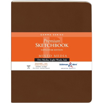 Stillman & Birn Gamma Series Softcover Sketchbooks, 150 gsm (Heavyweight), ivory paper, medium grain surface. Suitable for dry media, light wash and ink. Example of recommended usage: working in pencil or ink mixed with watercolor. Softcover bindings are flexible and lightweight and open totally flat. Acid-free, chloride-free, lignin-free.