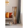 Add a warm accent to any space with the Stix floor lantern. The lamp has a sculptural twist, with a twisting frame made up of stacked black cane sticks and black metal poles. Ball feet at the corners elevate the luminaire slightly off the floor. Fabric-like beige paper inside the tower diffuses and softens the light produced by two 60-watt bulbs. This lamp has a black cord and is smart outlet compatible. Bulb is not included.