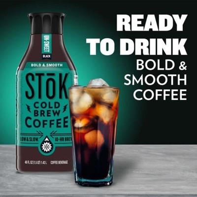 - DECAF COLD BREW: One 48 fl oz bottle of ready to drink Unsweetened, Black, SToK Decaf Cold Brew Coffee with 15 calories per 12 fl oz serving
