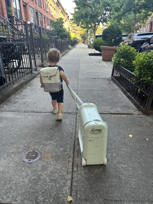 [This review was collected as part of a promotion.] I recently used this luggage with my 2 year old on a flight for a week-long trip. My overall impression is that it is fun and useful travel item that I wouldn’t have thought it but for myself, but was glad to have on the trip. The design was sleek and beautiful and I loved the light green color. We received many compliments on our trip and questions about where it was from. I thought the instructions could have been more clear. Especially the sliding feature of the underside drawer; that was hard to figure out. I also wish there was a way to prop up the strap when not in use. It just hangs on the ground, and in a busy airport it kept getting dirty and getting pulled under the wheels. We used this travel set on a short flight and it was nice for my daughter to have her feet propped up. It did not help her sleep, and I actually left the mattress at home because I wanted all the storage space of the luggage for her things. It did fit all the clothing for a 2 year old for a week-long trip. My child loved using it in the airport and I think it made her feel grown up. Then when she was tired we would pull her and that was also much more fun for her than the stroller. Overall, I would recommend this to people with kids traveling. It’s an attractive design and fun to use. Things I would change would be a hanger for the strap and slightly more storage space inside. Please note I received this product through the Stellar Product Testing Panel.