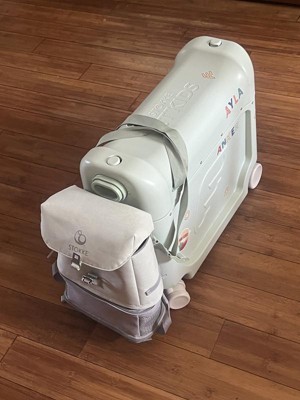 [This review was collected as part of a promotion.] I can’t believe how cute this package is! The backpack is beyond adorable for tiny travelers. It has cute pilot stripes on the straps and a plane-seatbelt buckle. The color is very nice and neutral. I’ve seen these at airports and wondered about how the steering feels. It was actually very easy to navigate. It was easy to pull either my 5 or 8 year old. They also loved scooting around on their own. I was easily able to figure out how to set it up as a bed, and everything feels very high end. Opening the container section in the top though is finicky for me. Both of my kids tried it at home and I think it would work for them as a bed or at least a nice foot rest. Ultimately though, we did not choose to take it on our most recent trip. We pack with carry-ons only currently, and with the pad packed inside, there was not enough space to pack it as full as a regular suitcase (one photo included shows the pad and a toiletry bag and electronic case). I think if we ever checked bags or had enough carry ons allowances to bring this, I would leave the pad at home and pack it full. I’d use it to let the kids play around at the airport (and I think this is worth its weight in gold for that!). I would also use this (if not needing a full suitcase) on a solo trip, because it’s quite comfortable as a seat on its own as well! All in all it’s a really nice ride-on suit case. I think it doesn’t have quite enough space for us to pack in with the padding in it as well. I still think it really has benefits, even without the padding, and it’s truly adorable. Thanks to Stellar Product Testing for allowing me to test this fantastic suitcase.