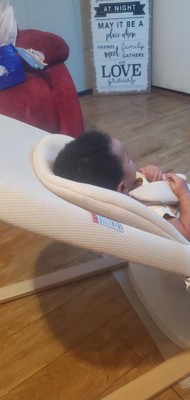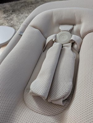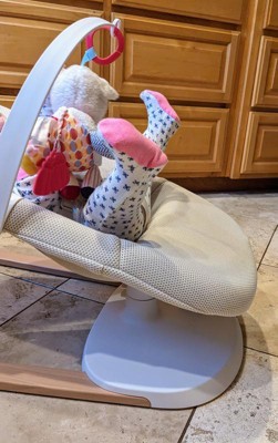 [This review was collected as part of a promotion.] I received this chair as a part of the Stellar Product Testing Panel when my daughter was 4 months old and about 14lbs. She fit perfectly and comfortably with the newborn insert still in. The 5 point harness/buckle gave me peace of mind when securing her in. This chair bounces off of the child’s movements. So the more she kicked the more it moved. The design is very sleek, and light weight. Fits anywhere, easy to transport, and with the neutral colors, looks good anywhere. We travel a lot so this is our go to travel chair to give her somewhere to relax besides her playpen. It comes with a mobile attachment that can be moved to multiple positions on the chair and you are able to attach any toy to it. Mine, unfortunately, did not come with any sort of attachment, so it was just a blank ring. But we had plenty of things to attach of our own. The seat fabric was very soft and my baby seems very comfortable when she is in the chair. When she is active it is great in entertaining her. When she is sleepy she doesn’t like to be in it as it stands still when she’s falling asleep. She prefers rhythmic movement when she’s tired. Overall, it doesn’t do many tricks but it’s an efficient resting/movement baby seat that can be a more portable option than battery powered alternatives. Otherwise, unless you have extra money to blow, I wouldn’t purchase this OVER an electric bouncer. It was still a solid, visually appealing product.