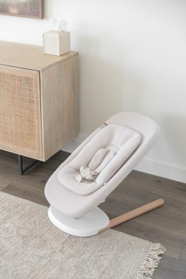 [This review was collected as part of a promotion.] The Stokke Yoga bouncer is everything I wanted and didn't know I wanted in a bouncer. Firstly, I absolutely love the aesthetics of this bouncer. Part of having a baby means having baby gear all around the house, which is usually taking away from my home aesthetics...not this bouncer! It looks so sleek and high end, I love the wood legs and cushion color. The cushion is extremely soft, I'm very impressed and so is my baby! We currently have this bouncer in our kitchen and baby always hangs out in it quietly while we cook and eat, which is a lot of time throughout the day. He doesn't make a peep while in this bouncer, he loves it! He coos, smiles, and enjoys looksing around. Unlike some other bouncers, it takes very little movement from baby to actually bounce, my baby is just over 2 months and he's able to get movement out of it from his feet alone. Every now and then I'll give the bouncer a quick tap to keep him moving and the bouncer will keep going for quite awhile on momentum alone which is really nice. Another awesome perk has been the toy extension arm that attaches to the side of the bouncer, I love that you can attach any toy there to keep your little babe entertained. We frequently rotate out toys for him to keep him busy. Other bouncers with toy attachments typically can't be changed out and babies tend to get bored of the same toy. Not an issue with Stokke Yoga! Set up was a breeze as is adjusting the lean which I appreciate. The toy arm attachment just snaps right onto the side of the bouncer. This bouncer gets 10/10 from baby and 11/10 from me, I'm very impressed. Thanks so much Stellar Product Testing Panel for allowing me and baby to test this baby bouncer!