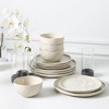 Embrace the beauty of coexistence with Stone Lain's Mirella Stoneware 16-Piece Dinnerware Set. An irregular shape with earthy, natural textures and a dual matte and glossy reactive glaze blend seamlessly together to create this stunning, cohesive collection. Mirella is the perfect rustic-chic set to elevate your everyday dining experiences. This stoneware dinnerware collection includes 4 10.75" dinner plates, 4 8.5" salad plates, 4 5.75" cereal bowls, and 4 17.5 oz drinking glasses.