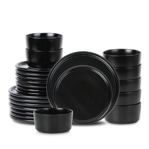- SERVICE FOR 8: The Eden 24-Piece Stoneware Dinnerware Set is comprised of 8 10.75” dinner plates, 8 8.6” salad plates, and 8 5.6” cereal bowls, serving 8 guests with a total of 24 pieces.