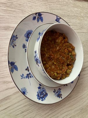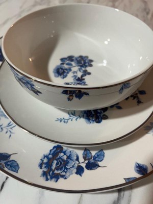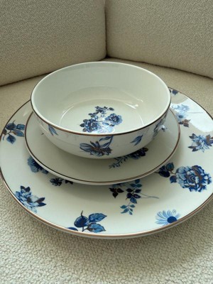 [This review was collected as part of a promotion.] I love this set of dinnerware. The blue print is beautiful and the brassy trim and overlay really elevates the look. I feel like I could use this for everything from a cute back-deck dinner party to a tea party. I also love how the bowls and plates all match but are not exactly the same print. The packaging was great- it arrived without any issues or chips, which is rare for porcelain. It’s clearly good quality. I’m excited to use this set this summer with girlfriends!