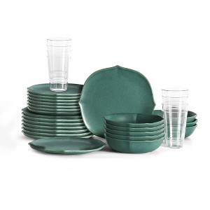 - WHAT'S INCLUDED: Enjoy delicious meals indoors or alfresco with a complete set of 32 pieces: 8 10.75” dinner plates, 8 8.3” salad plates, 8 8.1” pasta bowls, and 8 15.2 oz glasses.