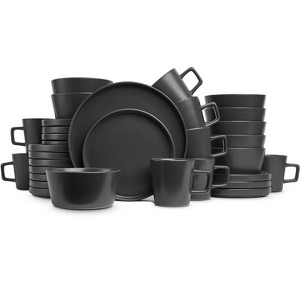 This dinnerware set impresses with its modern design, substantial weight, and high-quality stoneware construction. Guests appreciate its durability and ease of cleaning, making it perfect for both everyday use and special occasions. The stylish black matte finish adds a touch of elegance to any dining table, while the deep bowls and extended lips on plates enhance functionality. Overall, this set is a fantastic choice for those looking to elevate their dining experience.