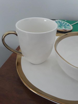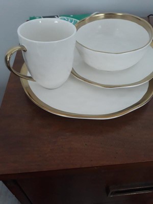 [This review was collected as part of a promotion.] I guess I summed it up in my title just love it, it’s so well crafted, the stone design is amazing the size is perfect and white and Mat gold is gorgeous. All the cutlery is really well crafted I also loved the mug so pretty.
