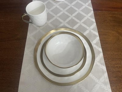 [This review was collected as part of a promotion.] My wife and I got this dinnerware set recently as we've been steadily "losing" dinnerware over the past couple of years, and looking to add a nice touch of color/elegance without breaking the bank. This set more than delivers - The pieces are absolutely gorgeous without being gaudy, and they seem to be well-made as well. The look of these is a great mix of a classic gold look with a modern touch as well. Definitely the kind of plate I can see up pulling out when we have a few friends over for a nice dinner date, and (obviously importantly) we didn't have to shell out a bunch of money. I couldn't be happier with these.