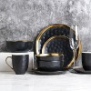 I already had gold flatware that never got used and was looking for black and gold dinnerware. This set is gorgeous! I love the subtle "dimples" and slightly irregular edges of the plates, and the coffee cups are perfect - not the useless little 6 ouncers that often come with a dinnerware set.