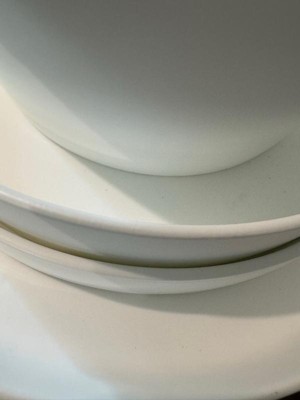 [This review was collected as part of a promotion.] What I like about this high quality set made with bone china is that it's deal for formal occasions, while also being suitable for everyday. Its microwave and dishwasher safe. It's uniquely crafted in a crisp matte white and the modern shaped pieces are perfectly smooth with no pattern or texture. What I didn't like was that they didn't nest whatsoever so if any of these pieces were to get nudged they would easily fall, requiring them to be stacked in such a way that they would take up more space than need be. I didn't like the odd feel or weight of them, nor did I like the chalky sound they made when nudged. There was a grinding sound that I found irritating. I personally won't use these on a regular basis and will instead opt for an entirely different set. While these might be considered ideal for some, they weren't for me.