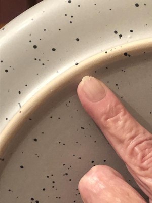 [This review was collected as part of a promotion.] We have been using our dinnerware a little over a week now and love it. The lip on the plates are a great feature and keep in all liquids on plate unlike others. All the dinnerware hold up great in the dishwasher and microwave and when arrived they were all packed nicely and properly. The plates do leave knife marking unfortunately but they still look great! Very nice dinnerware and very happy with them.