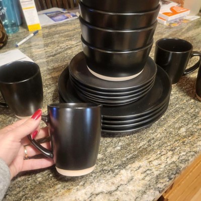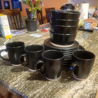 [This review was collected as part of a promotion.] I love these dishes. They are just the right thickness and sizes I needed. The black matches with my kitchen.The dishes and cups are tough, meaning, will not break easily. The quality of these are excellent. . I get compliments all of the time. I'm proud of my table. The value of these are immeasurable to my family. I recommend to my friends and family.