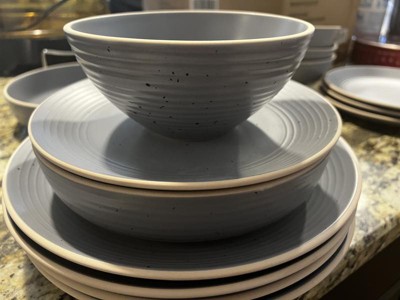 [This review was collected as part of a promotion.] This dinnerware set is just so gorgeous. Our style is very rustic with and edge and they have the perfect look for our home. I have never had a pasta bowl with this design before and they are my favorite piece hands down. I will be able to use these to entertain friends or make a special dinner for my husband. I love that they are microwave and dishwasher safe, but I have to say, the natural stone feeling rims make me nervous about putting them in the dishwasher because it feels like they would chip easily. Besides that, I love them!!