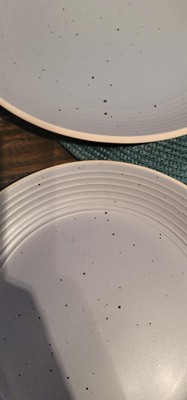 - Features a stunning speckled design with a neutral color stoneware backdrop. Ridged rims and bowls round out the beautiful craftsmanship of these dishes.