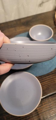 [This review was collected as part of a promotion.] This set is awesome! I’d like to purchase more sets! They are so heavy duty and sturdy! I love the color, it’s much darker in person than online. I love the large bowls for spaghetti and other meals. My kids really enjoy them, too. I will say they only thing that I don’t like is sometimes a fork or knife scrapes it the right way and it sounds like nails on a chalkboard— yikes! But I feel like that’s fairly typical with this type of stonewear.
