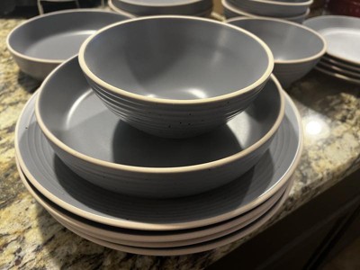 I loved how beautiful this set is; however, I was so disappointed that I had to return it. The bottom of the plates were all scratched after lightly using a fork and knife on them. I couldn't believe that it could be scratched with normal use! I think because they have a matte finish and not glazed that they cannot withstand silverware. Would not recommend! Thankfully Target took them back for a full refund without a problem.