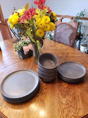 - SIMPLE DESIGN: The Logan is a round dinnerware set with a mordern crimped edge on the plates and has a textural feel on the bowls. It comes in various neutral colors, perfect to have as your go-to plates and bowls.