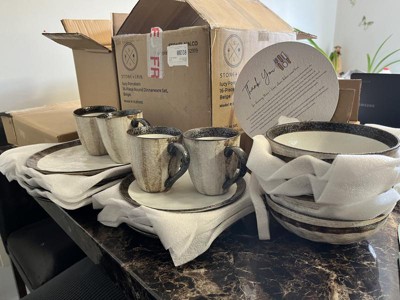 [This review was collected as part of a promotion.] My Stone Lain Lucy 16 piece set is a beautiful color and very great quality. The set is very light, I was able to pick up and carry the whole 16 piece set myself without straining at all. The outer inner edges are not smooth like a typical porcelain set. It has a smooth textured inner surface that I’ve personally never seen before.