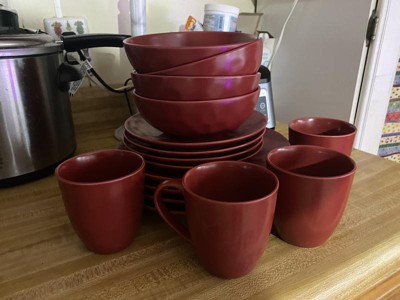 Stone Lain Sam 16-Piece Porcelain Dinnerware Set, Service for 4, Red