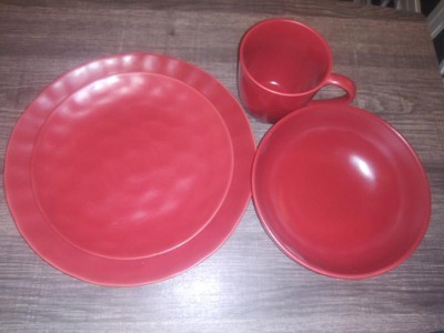 - Textured design, make your place setting stand out with uniquely textured red porcelain plates and bowls and the mugs is smooth.