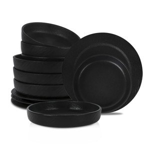 [This review was collected as part of a promotion.] This are the most beautiful design, elegant looking dinnerware you'll see, wordy of culinary magazines, websites and social media pictures, something you'll like to show of with in a friends o family dinner. This dinnerware have a look of cast iron or polished volcanic stone, is heavy and seem very durable. Looks very elegant
