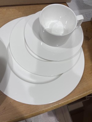 [This review was collected as part of a promotion.] Love the look of the simple, clean, white dish. The dishes them self aren’t too heavy so they feel nice to hold. I love that the mug isn’t overly big and very lightweight. Prefect for my morning espresso. Dishes were easy to clean and wash and I like that I can use in dishwasher on days I don’t feel like doing dishes. They have held up nicely with my son microwaving his pizza pockets and mac n cheese. Very practical, nice high end looking set of dishes.