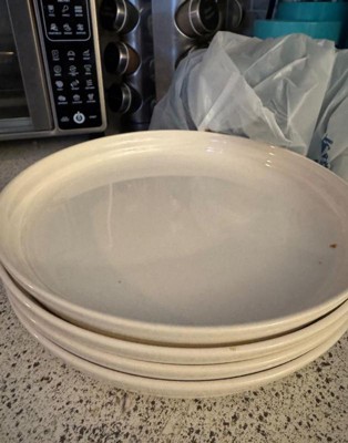 [This review was collected as part of a promotion.] This is a really beautiful dinnerware set and was packaged extremely well. They are made of porcelain which is a very durable material. I got the white which goes with everything. These are perfect for ham and beans, spaghetti, salads, lasagna.... Etc! I do love that they have an edge to keep your food from spilling. The only downside is that they are a little on the heavy side. And oh, they do get hot in the microwave!