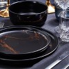Stone Lain 32 Pieces Porcelain Gold Splash Black Round Dinnerware Set includes 8 complete place settings. These sleek porcelain tableware settings are accentuated by a brilliant splash of gold. It has a modern art, downtown look and feel. It includes 8 large round dinner plates, 8 classy round salad plates, 8 deep round bowls and 8 rounded 12 oz. mugs. These home essentials are expertly crafted and artfully designed. 100% dishwasher safe for easy cleaning and durability. The hip, trendy design pairs exquisitely with both formal and casual cutlery, as well as with your favorite glassware and tablecloths. Stone Lain creates unforgettable dinnerware to make every occasion memorable.