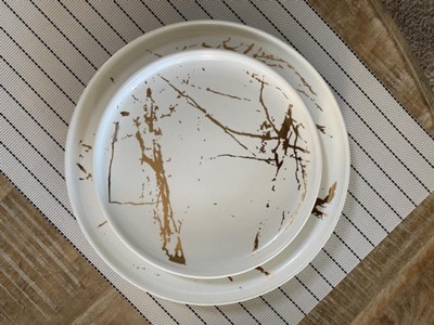 [This review was collected as part of a promotion.] I had a friend who had some Stone Lain dinnerware and I was impressed by them, so I already had high hopes for the Stone Lain Porcelain 16 Piece Dinnerware Set White Gold Splash Set, and I am very happy to report, they lived up to my expectations, and more. The set came very well packaged, and this arrived in pristine condition. I inspected each piece and found no flaws or scuffs. You can tell they care about their products, as they are well crafted. The color is consistent through the porcelain, and the sizes are unvaried. The set is heavier than I remembered, which gives me great confidence that they will last a very long time. The viening hasn’t faded, nor has the porcelain chipped. Fortunately these are dishwasher safe, and no worse for the wear, though I do prefer to hand wash. It doesn’t say anything about the microwave, so I definitely haven’t put them in there to be safe. The plates are amply sized, and what you would expect. I took a pic with a soda can you give you an idea about the drinking cup size. They look fun and modern, and they go perfect with our style. They are great for a casual dinner party and an outdoor lunch, but could be dressed up for a more formal event due to the gold, if you properly accessorize the set. We mostly use them for general dining, and have been very satisfied. They add a fun pop to even the blandest of food, and we’ve certainly enjoyed the compliments of our guests. Overall, the Stone Lain Gold Splash Set is well crafted, versatile, and easy to clean...can’t ask for more than that. I definitely recommend.