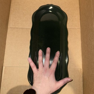 Stoneware Reactive Glaze Oval Serving Tray Dark Green - Hearth & Hand™ with Magnolia