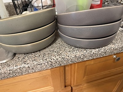 A: The bowl is made from stoneware, known for its durability and classic look.