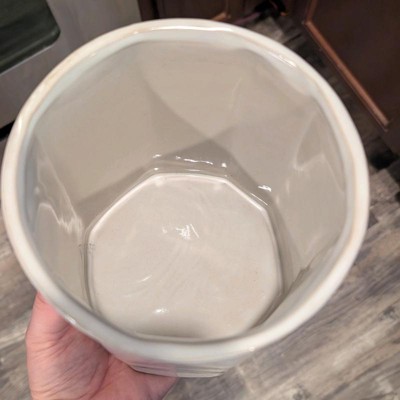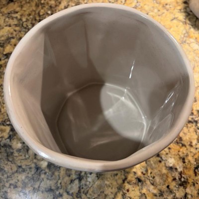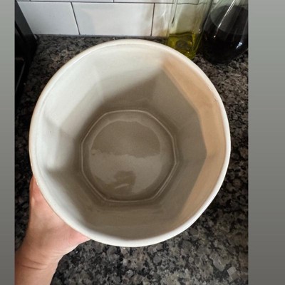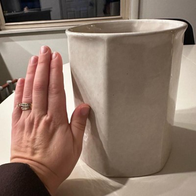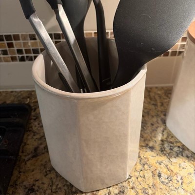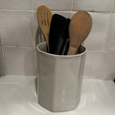 [This review was collected as part of a promotion.] This Hearth and Hand line really knocked it out of the park. Between the ceramic material and creamy white color, it simply matches any kitchen! I feel like this adds to my kitchen design instead of takes away. The design is tapered toward the top and the interior is BIG to fit multiple kitchen utensils!