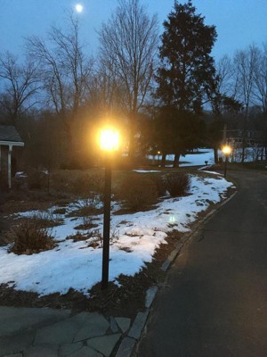 These light fixtures add a charming appearance to our facade. My electrician installed them perfectly and I love how they sparkle at night. And they aren’t overly busy looking.