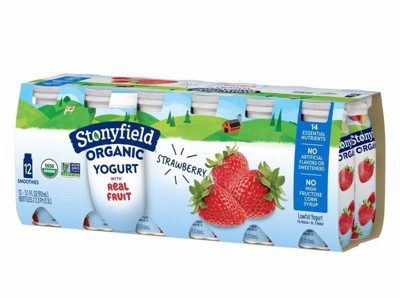 - #1 ORGANIC KIDS YOGURT: Stonyfield Organic Lowfat Yogurt Strawberry Smoothies are the portable super snack for hungry kids. 3.1 fl. ounces per bottle - no spoon required!
