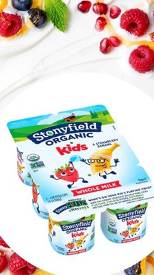 - STONYFIELD ORGANIC Kids Whole Milk Yogurt Cups are the portable super snack for hungry kids, featuring sweet strawberry and creamy banana flavors.