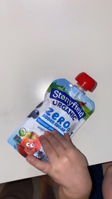 - Four 3.5 oz pouches of Stonyfield Organic Kids Zero Grams Added Sugar Blueberry Apple Carrot Whole Milk Yogurt