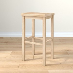 The Smith Bar Stool from Grain & Grove combines sleek style and essential comfort, making it a standout addition to your high counters, home bar, or tall pub table. Its minimalist design effortlessly complements any décor, offering a timeless look that adapts to your space. Built from 100% solid rubberwood, this saddle bar stool is as sturdy as it is stylish, while its curved seat provides a comfortable place to sit. Conveniently placed crossbars double as a footrest, making this tall bar stool even more inviting. Available in packs of 1, 2, or 4, this solid wood bar stool offers easy versatility, whether you’re enjoying a casual meal or a happy hour with friends.
