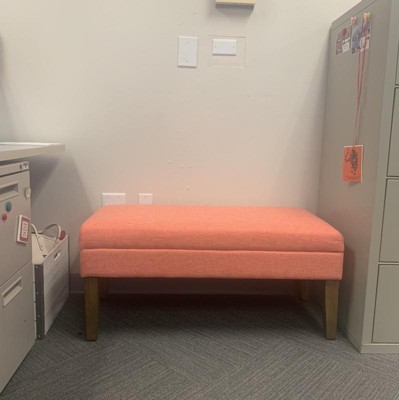 This bench was just what I needed to pull my guest bedroom together. The coral color is even more beautiful in person and it doesn't look cheap at all. Very easy to assemble too!