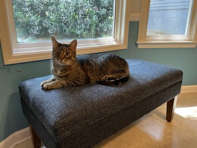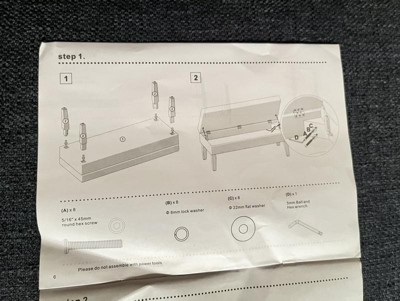 Beautiful bench! Fabric is a very nice quality and it seems very sturdy. All you have to do is attach the legs and you’re all set!