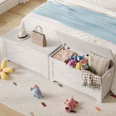 23.6" Storage Chest, Storage Trunk with Safety Hinge, Storage Bench, Wooden Storage Organizer, Shoe Bench for Entryway, Bedroom, Living Room, White