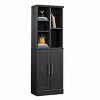 Multipurpose storage cabinet for organized livingSix adjustable shelves for customizable storageSuitable for laundry, office, entryway, and moreBlack finish complements diverse decor stylesDurable construction with adjustable base levelersCompact dimensions optimize space usageQuick and easy assembly processVersatile storage for cleaning supplies and toiletries for peace of mind