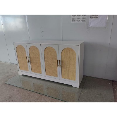 Description:Name: Storage CabinetWith Glass Doors, 2 Fluted Drawers, Adjustable ShelvesPacking list:1 x Storage Cabinet