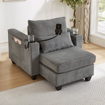 Storage Chaise Lounge Upholstered Accent Chair Lazy Single Sofa Couch Leisure Chair with Phone Stand, Pillow, Side Pockets, Gray - ModernLuxe