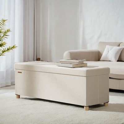 43" Storage Ottoman Bench with Legs, 30 Gal. 112 L Capacity, Synthetic Leather Footrest Footstool, End of Bed Bench, Cloud White